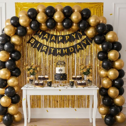 Transform any space into a stylish celebration with our all-in-one, premium Birthday Party Decorating Kit. This sophisticated Metallic Golden and Black theme is perfect for men, women, teenagers, and any milestone event (18th, 21st, 30th, 50th).