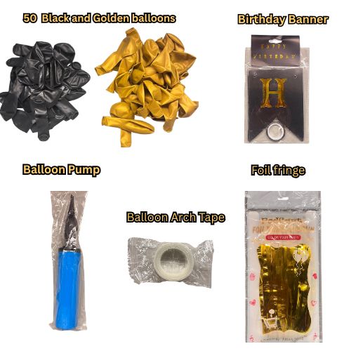 50 Premium Balloons: A beautiful mix of shimmering Metallic Gold and sleek Matte Black balloons (high-quality, thick latex).