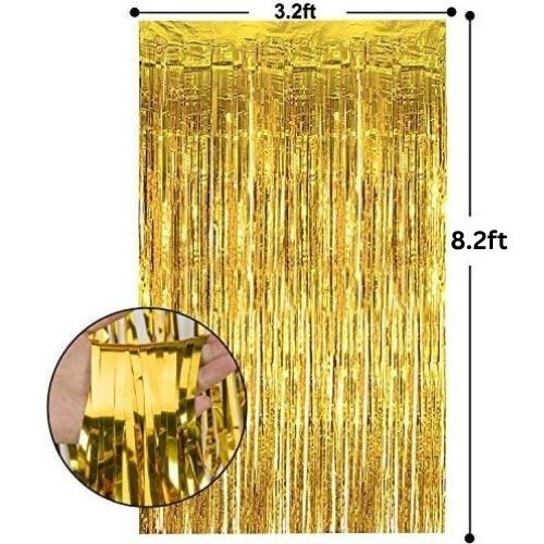 Bonus Foil Fringe: A gold foil curtain for a photo booth backdrop (as pictured).