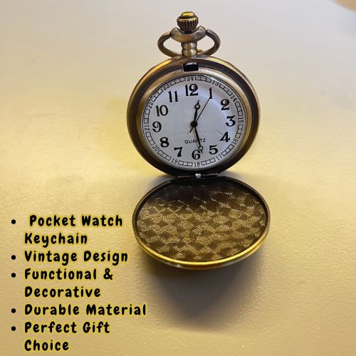 The Merriment vintage pocket watch with key holder combines classic elegance with practical functionality. Crafted with meticulous attention to detail, this timepiece offers precise timekeeping while the integrated key holder ensures you keep your essentials together securely. Its timeless design makes it a distinguished accessory for collectors and everyday users seeking a refined vintage style. Durable and easy to carry, it seamlessly blends tradition with convenience.